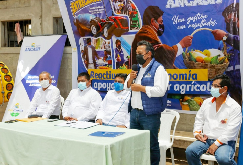 Comprometidos con mejorar la producción de los agricultores del valle de Casma y fortalecer su posición en la comercialización de sus productos ante la demanda del mercado internacional, el Gobierno Regional de Ancash entregó está mañana dos importantes maquinarias agrícolas por un monto total de 211 mil soles. La actividad estuvo dirigida por el gerente general regional, Víctor Sichez Muñoz, y los beneficiaron fueron los agentes económicos organizados (AEO) “Asociación de Pequeños Agricultores de Productos de Exportación de la provincia de Casma - APAPEXCA” con 37 socios y la “Asociación de Agricultores de Casma” con 21 socios. Esta entrega fue gracias al fondo concursable de PROCOMPITE. El primer AEO, que busca mejorar la producción de mango variedad Kent en los sectores de Sechin, Carboneria, Chilly, Santa Matilde, Mojeque y Purgatorio; recibió una Chipeadora marca ECHO BEAR CAT, 4", CH4400, motor SUBARU, 400 CC, 14 HP (trituradora), un bien valorizado en S/ 26 mil soles. El segundo AEO que también tiene la producción de mangos, fue beneficiado con un Tractor Frutícola equipado con una pulverizadora de alta presión diseñada especialmente para la aplicación de pesticidas en árboles frutales que controlen plagas y con la cual se fumigará a los cultivos con mayor eficiencia, a menor costo. Esta maquinaria tiene un valor de S/185 mil soles. "Tenemos el compromiso de contribuir para que las propuestas productivas, planes de negocios, sean beneficiadas a través del fondo concursable Procompite para mejorar la competitividad de las cadenas productivas mediante el desarrollo, adaptación, mejora o transferencia de tecnología para lograr el desarrollo competitivo y sostenible de la cadena productiva", declaró Sichez Muñoz. Al acto de entrega llegó también el consejero por la provincia de Casma, Raúl Lafora; gerente regional de Desarrollo Económico, José Mendoza; y los representantes de las AEO beneficiadas, Rafael Santolalla y Marcelo Méndez.