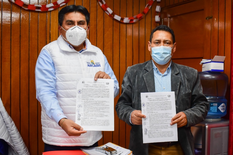 El gobernador regional (p), Ing. Henry Borja Cruzado, firmó dos convenios por un monto de 11 millones 900 mil soles, proyectos relacionados a la provisión de agua para riego tecnificado y sistema de riego en los sectores Huacchiquechua y Santa Rosa de Jahuan, respectivamente, pertenecientes al distrito de Huacchis, provincia de Huari.. El gerente general regional, Víctor Sichez Muñoz, entregó hoy los convenios al alcalde de la Municipalidad Distrital de Huacchis, Eliel Garrido Tello, destacando la predisposición del mandatario regional y su compromiso con el sector agrícola en las 20 provincias de nuestra región.. “Son dos obras de envergadura en beneficio de los hombres del campo de Huacchis. La primera está relacionada a la creación del servicio de provisión de agua para riego tecnificado en Huacchiquechua, por un monto de 10 millones 626,387 soles. La segunda, es un sistema de riego en Santa Rosa de Jahuan, por un millón 225 mil 160 soles”, detalló el funcionario.. Sichez dijo que con estos proyectos se busca reactivar la agricultura y continuar con su política de ejecución de gasto responsable.. Por su parte, el alcalde de Huacchis agradeció al gobernador regional, Henry Borja, por honrar su compromiso con quienes labran la tierra.. “Con hechos está demostrando su liderazgo. Mi distrito carece de economía y por ello toqué las puertas del gobierno regional. Hemos sido escuchados y con estas obras confío en que la economía de estos hombres del campo mejorará considerablemente”, puntualizó.. En Huacchiquechua y Santa Rosa de Jahuán se beneficiarán más de 200 agricultores y más de 100 hectáreas de cultivo de paltos, chirimoyas, granadía, maíz, papa, hortalizas, entre otros productos de pan llevar.