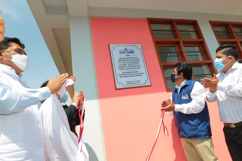 El obispo de la Diócesis de Chimbote, monseñor Ángel Francisco Simón Piorno, felicitó al gobernador regional (p), Ing. Henry Borja Cruzado, por reactivar y hacer entrega de obras de envergadura paralizadas en anteriores gestiones.. “Estábamos acostumbrados a que otros gobernadores ofrecían todo y no invertían nada, y decían después que estaban reservando pan para mayo. Esa es la realidad que hemos vivido desde hace varios años aquí en Áncash y vemos que las cosas van cambiando”, expresó el prelado en la reciente inauguración de la Institución Educativa Inca Garcilaso de la Vega en la urbanización el Trapecio (Chimbote).. Agregó que por los casi 10 años que lleva como obispo en Chimbote es testigo de muchas obras inconclusas por parte del Gobierno Regional de Áncash, que eran una vergüenza para la ciudad, pero que ahora se están haciendo realidad como el colegio Víctor Andrés Belaúnde y ahora el Inca Garcilaso.. “Lo felicito de corazón y creo que interpreto el sentir de la mayor parte del pueblo de Chimbote. Usted habla poco, pero hace mucho”, puntualizó monseñor, que bendijo la nueva infraestructura educativa en el Trapecio.