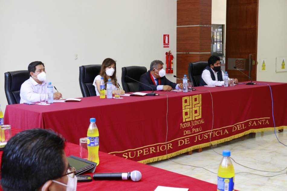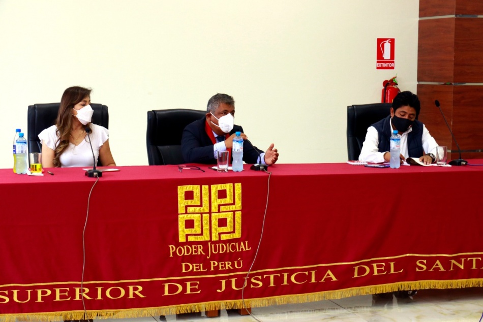 En el marco de la Ley de Presupuesto 2022, que autoriza a los gobiernos regionales y locales invertir en la ejecución de proyectos de inversión pública del Poder Judicial y Ministerio Público, esta mañana el gobernador regional de Áncash, ingeniero Henry Borja Cruzado, recalcó el compromiso de contribuir con el sistema de justicia mediante obras de infraestructura o equipamiento.. "Estamos llanos a atender las necesidades de la región, entre ellas las del Poder Judicial. Vamos a destinar un presupuesto para atender estas demandas y en caso de no ser suficiente, vamos a gestionar estos fondos", manifestó durante una reunión en la Corte Superior de Justicia del Santa, donde participaron el presidente de esta institución, Dr. Carlos Alberto Maya Espinoza; la vicepresidenta del Congreso, Dra. Lady Camones Soriano, y el gerente de la Municipalidad Provincial del Santa, Andrés Ruíz Gómez, en representación del alcalde provincial.