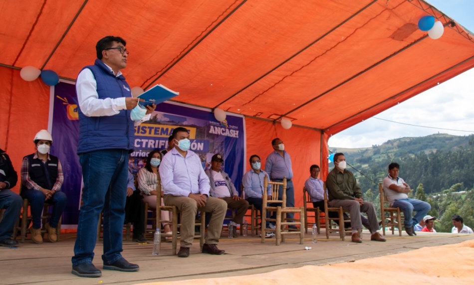 Con una inversión de S/ 1 millón 227 mil, el Gobierno Regional de Áncash inició la obra de “Mejoramiento del sistema de electrificación de la localidad de Pariacaca, distrito y provincia de Carhuaz, con el objetivo de beneficiar a 269 familias de este sector.. En representación del titular de la Región, Henry Borja Cruzado, el gerente general Víctor Sichez Muñoz manifestó que desde hace 20 años las familias de este poblado cuentan con el servicio de energía eléctrica de forma inadecuada, debido a que existe una infraestructura eléctrica en mal estado, con una venta en bloque, es decir con un solo suministro de energía.. El proyecto será ejecutado en 120 días calendarios y la empresa Hidrandina será la responsable de la operación y mantenimiento de las nuevas redes eléctricas. La obra tendrá dos niveles de voltaje según las especificaciones de Hidrandina y se colocarán 160 postes.. Sichez resaltó el movimiento económico que generará este proyecto, ya que la dotación de energía eléctrica de forma permanente resolverá las enormes brechas existentes en infraestructura entre las zonas urbanas y las áreas rurales.. "Hablamos de rentabilidad social, pues se direccionará a los pueblos a la modernidad, educación, comunicación con el mundo, mejoras en salud, amplía el horizonte de vida, facilita las labores domésticas, pero, sobre todo, ayudará a la ejecución de proyectos productivos como el bombeo de agua potable y regadío, entre otras pequeñas industrias que, a su vez, generan mejoras económicas en los pobladores, reduciendo así los índices de pobreza", manifestó el gerente.. En la ceremonia participaron pobladores de Pariacaca, así como el consejero de la provincia de Carhuaz, Filiberto Manuel Chacpi Rodrígue; el consejero delegado Edgar Espinoza Ramírez; el presidente de la Comunidad Campesina, Juan Dolores Cautivo Regalado; y el presidente del Comité de Gestión de Electrificación, Fidel Pascual Palma.