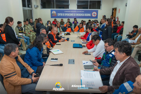 El gobernador regional de Áncash, Koki Noriega Brito lideró la sesión extraordinaria de la Plataforma Regional de Defensa Civil con la finalidad de brindar los reportes correspondientes en la atención por la emergencia suscitada con el desborde del rio Casca en Independencia en Huaraz.