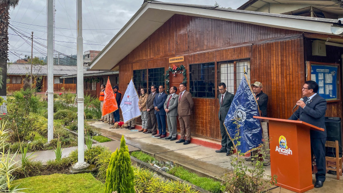 Durante la ceremonia, el gerente general regional, Marco La Rosa Sánchez izó el Pabellón Nacional, mientras que la bandera de Huaraz la izó el subgerente de Recursos Humanos, Abner Fierro Navarro.