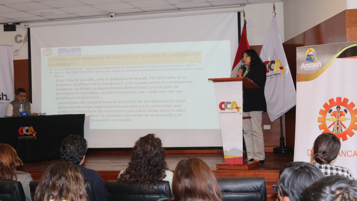 Asimismo, se desarrollaron exposiciones sobre formalización minera, certificación ambiental y procedimientos administrativos, a cargo del Ing. Jaime Fernández y la Ing. Carmen Rosales, quienes brindaron orientación sobre los pasos necesarios para que los pequeños productores desarrollen sus actividades en el marco de la normativa minero-ambiental.