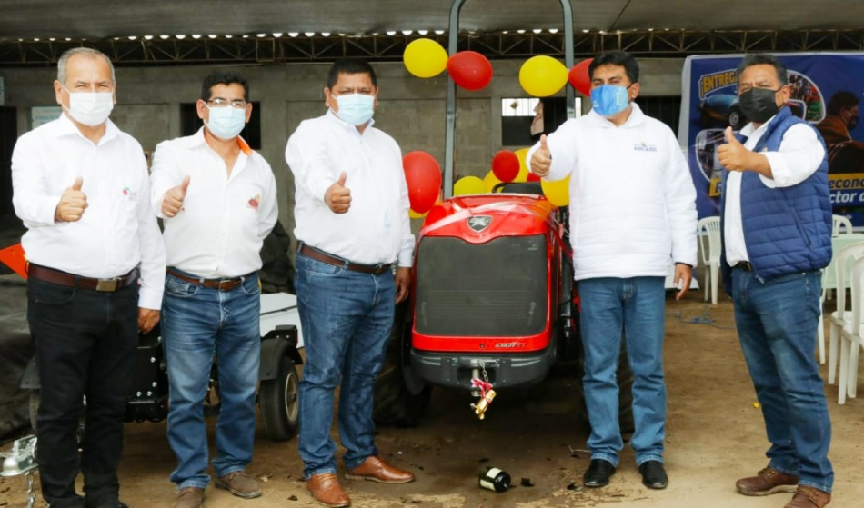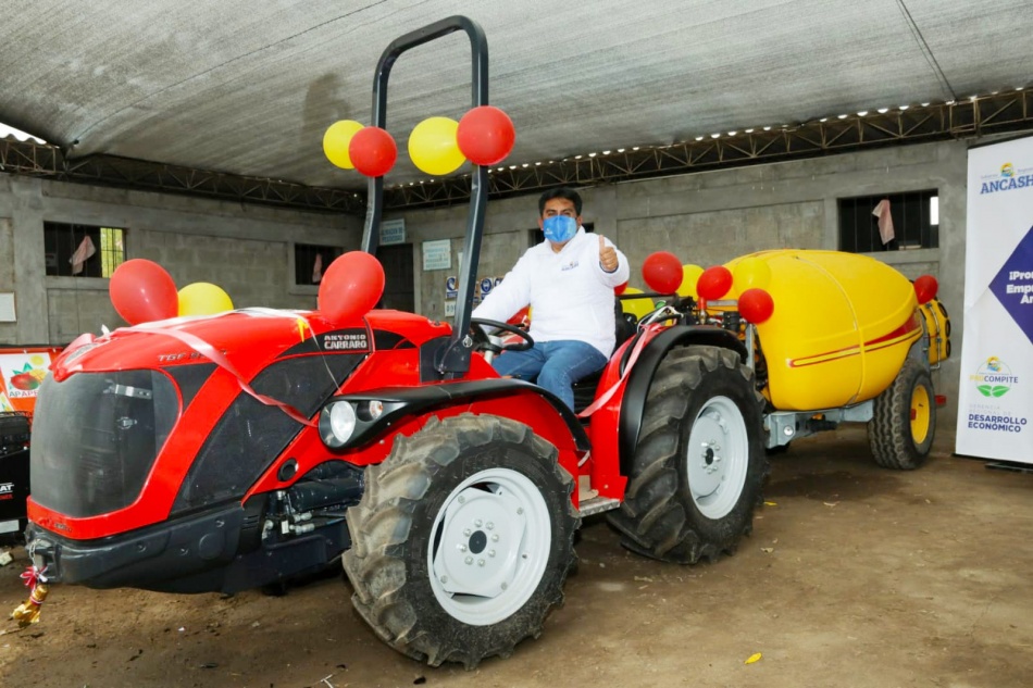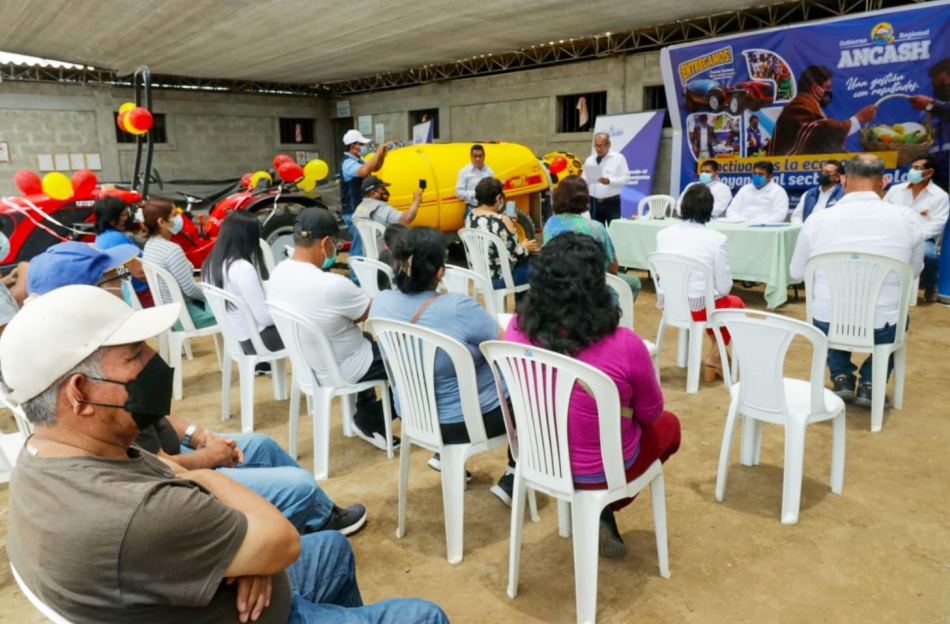 Comprometidos con mejorar la producción de los agricultores del valle de Casma y fortalecer su posición en la comercialización de sus productos ante la demanda del mercado internacional, el Gobierno Regional de Ancash entregó está mañana dos importantes maquinarias agrícolas por un monto total de 211 mil soles. La actividad estuvo dirigida por el gerente general regional, Víctor Sichez Muñoz, y los beneficiaron fueron los agentes económicos organizados (AEO) “Asociación de Pequeños Agricultores de Productos de Exportación de la provincia de Casma - APAPEXCA” con 37 socios y la “Asociación de Agricultores de Casma” con 21 socios. Esta entrega fue gracias al fondo concursable de PROCOMPITE. El primer AEO, que busca mejorar la producción de mango variedad Kent en los sectores de Sechin, Carboneria, Chilly, Santa Matilde, Mojeque y Purgatorio; recibió una Chipeadora marca ECHO BEAR CAT, 4", CH4400, motor SUBARU, 400 CC, 14 HP (trituradora), un bien valorizado en S/ 26 mil soles. El segundo AEO que también tiene la producción de mangos, fue beneficiado con un Tractor Frutícola equipado con una pulverizadora de alta presión diseñada especialmente para la aplicación de pesticidas en árboles frutales que controlen plagas y con la cual se fumigará a los cultivos con mayor eficiencia, a menor costo. Esta maquinaria tiene un valor de S/185 mil soles. "Tenemos el compromiso de contribuir para que las propuestas productivas, planes de negocios, sean beneficiadas a través del fondo concursable Procompite para mejorar la competitividad de las cadenas productivas mediante el desarrollo, adaptación, mejora o transferencia de tecnología para lograr el desarrollo competitivo y sostenible de la cadena productiva", declaró Sichez Muñoz. Al acto de entrega llegó también el consejero por la provincia de Casma, Raúl Lafora; gerente regional de Desarrollo Económico, José Mendoza; y los representantes de las AEO beneficiadas, Rafael Santolalla y Marcelo Méndez.