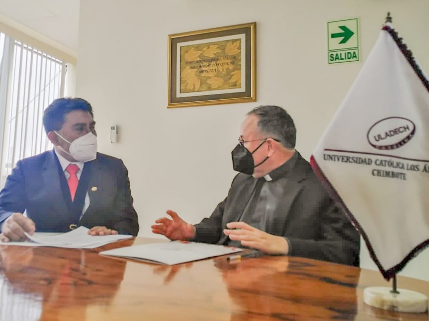 El Gobierno Regional de Áncash, a través de su gerente general regional, Víctor Sichez Muñoz, firmó un convenio de cooperación interinstitucional con la Universidad Católica los Ángeles de Chimbote, representada por su rector Juan Roger Rodríguez, con el cual los estudiantes de los últimos ciclos de las diferentes carreras, así como sus egresados, podrán realizar sus prácticas preprofesionales y profesionales.. “Es la política de nuestro gobernador regional, ingeniero Henry Borja Cruzado, dar oportunidad a los profesionales ancashinos. Muchos de ellos están en formación y necesitan realizar sus prácticas para obtener su grado de bachiller y otros que actualmente exige la Superintendencia Nacional de Educación Superior Universitaria (Sunedu)”, manifestó en su alocución el funcionario de Gore.. Sichez saludó la firma de este convenio y dijo que esperan aprovechar al máximo los conocimientos de los profesionales de la Uladech en las distintas unidades ejecutoras, subgerencias y gerencias del Gobierno Regional de Áncash, todo en el marco de la ley.. “Somos conscientes que la calidad educativa es importante hoy en día. Necesitamos profesionales que aporten en beneficio de la región. Uladech es una universidad que ha crecido, que es patrimonio de Chimbote y a la que estamos dispuestos a apoyar para su pronto su licenciamiento”, anotó Sichez.. GRACIAS. Por su parte, el padre Juan Roger agradeció la predisposición del gobernador Henry Borja y del gerente general Víctor Sichez, por permitirle a sus estudiantes universitarios llegar a una institución grande y de prestigio.. “Estamos muy agradecidos por esta oportunidad y por ese aporte decidido con esta casa superior de estudios. Valoro esa colaboración efectiva y nosotros seguiremos haciendo los esfuerzos para conseguir nuestro licenciamiento y éste es un aliciente”, puntualizó.