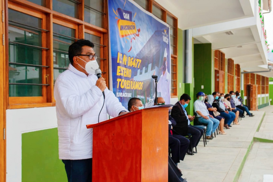 Entre la algarabía de alumnos, padres de familia y personal docente, el gerente general regional, Víctor Sichez Muñoz, inauguró el remodelado colegio 86477 Estenio Torres Ramos de Yuracoto en el distrito de Caraz.. "Este colegio, con 48 años de funcionamiento, con 320 estudiantes de primaria y secundaria y 29 docentes, requería de urgente intervención de sus autoridades, es por ello que se invirtió más de 5 millones de soles", manifestó el funcionario, luego de develar la placa.. La nueva infraestructura consta de cuatro pabellones de dos niveles cada uno, con sala de dirección, sub dirección, secretaría, tópico de psicología, archivo, sala de profesores, entre otros ambientes, completamente equipados.. Participaron de la ceremonia el director regional de Educación, Marco Flores; los consejeros por Huaylas, María González y Jhon Milla; la consejera delegada, Carmen López, el director de la I. E., Felix Reyes; el alcalde de Huaylas, Esteban Florentino; entre otros invitados..
