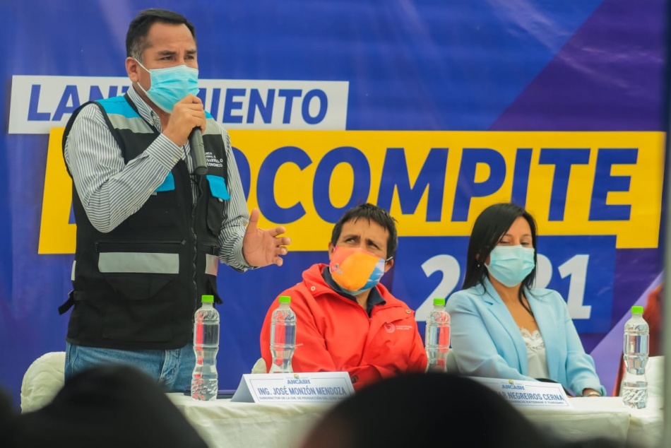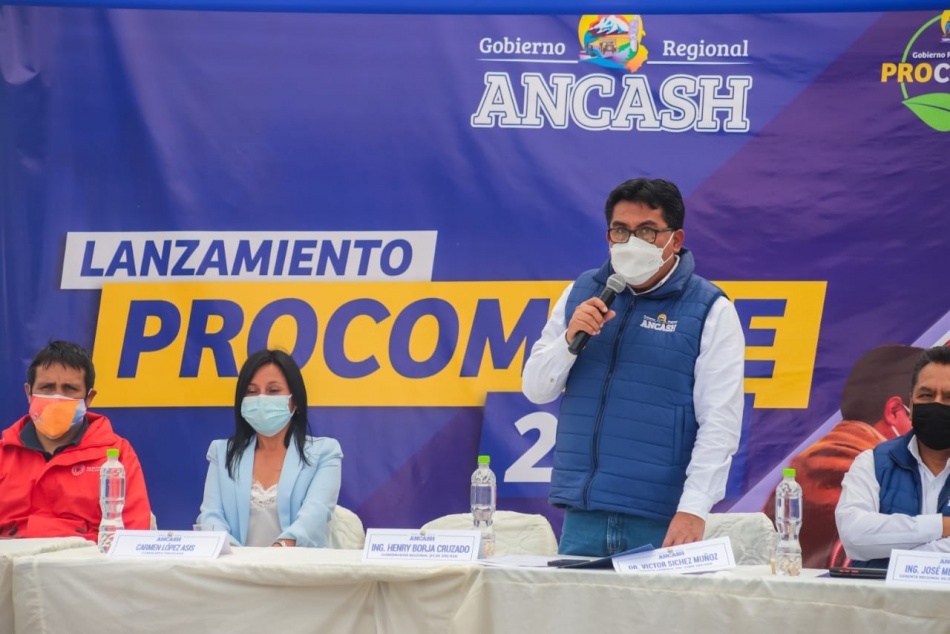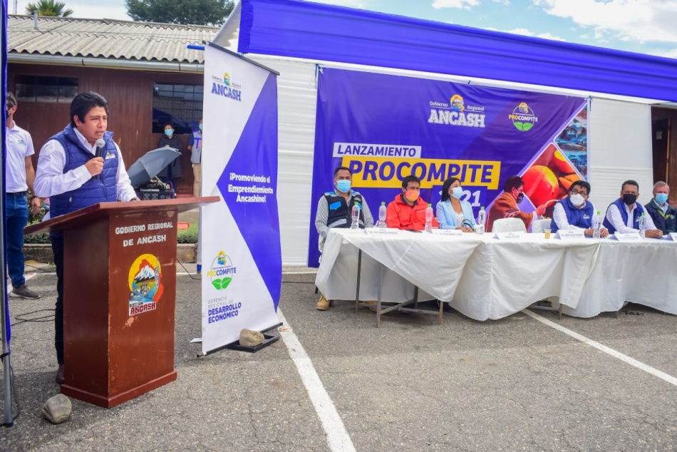 Esta mañana, el gobernador regional de Áncash(p), Ing. Henry Borja Cruzado, lideró el lanzamiento oficial del fondo concursable de Procompite 2021, que cuenta con un presupuesto de 6 millones de soles, con el objetivo de contribuir con el cofinanciamiento de planes de negocio y propuestas productivas en las 20 provincias y reactivar la economía en la región.. Borja Cruzado expresó: “Sabemos que Áncash tiene mucho potencial en su gente y en sus recursos. Confiamos que solo basta un impulso para ayudarlos a crecer, y por qué no, encaminarlos a la exportación. Para este año se beneficiarán a las cadenas productivas de palta, mango, granos andinos, cuyes, vacunos, apicultura, acuicultura, pesca artesanal, turismo rural comunitaria y artesanía.. Es importante destacar que cada AEO podrá ser beneficiada con un presupuesto desde 80 mil hasta 1 millón de soles, en tres tipos de categorías (A, B y C). Para postular a este concurso, deberán contactarse con la Gerencia Regional de Desarrollo Económico a fin de recibir toda la información respecto a los requisitos y plazos. Las propuestas ganadoras se darán a conocer el 7 de febrero del 2022.. En el acto protocolar participó también el gerente general regional, Víctor Sichez Muñoz; la consejera delegada, Carmen López Asís; los consejeros por las provincias de Huaraz, Alexander Celedonio; Corongo, Alfredo Salina, Huari, Tatiana Chávez; Casma, Martín Lafora; Carhuaz, Filiberto Chacpi; Aija, Miguel Rosales; funcionarios, alcaldes invitados y AEO beneficiados en las anteriores ediciones de Procompite.. De igual manera participaron las asociaciones de: Agricultores de Casma, productores agroecológicos de Roca, Tejidos Manos Mágicas, Ahuakikar, KoriMaki, Hijos de San Cristobal, ceramistas de Taricá, Arandino, entre otros.