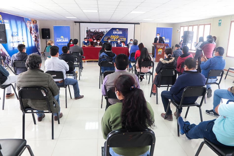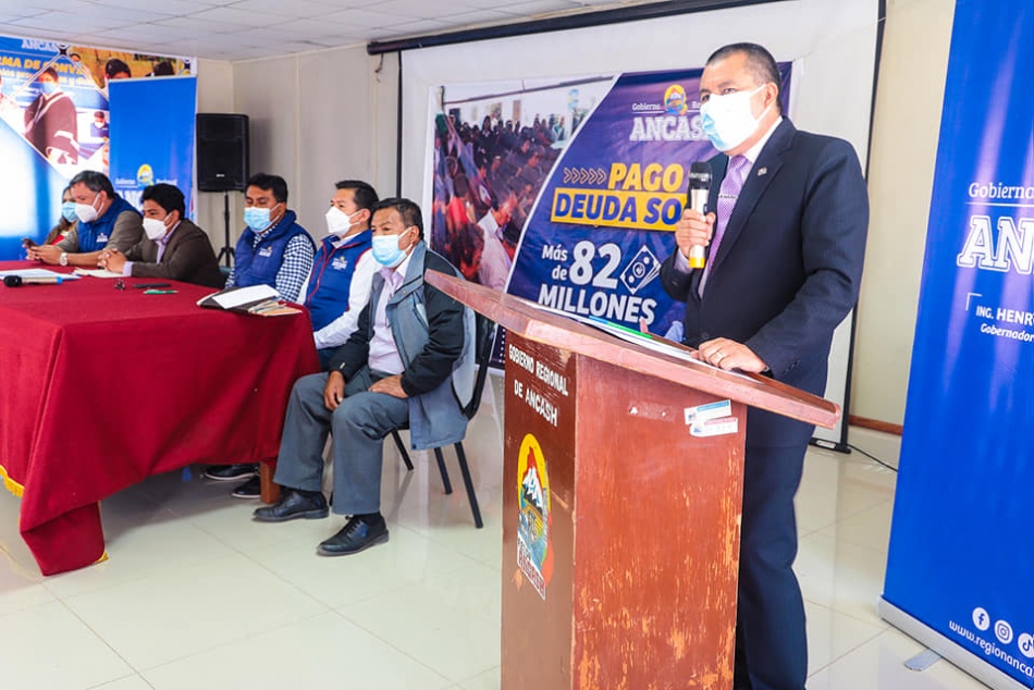 Más de 102 millones de soles es lo que logró obtener la actual gestión del Gobierno Regional de Áncash para el pago de la deuda social con el magisterio ancashino (por sentencias judiciales como CTS, sepelio, luto y otros) y demás sectores como agricultura, transportes, salud y Proyecto Chinecas. Este anuncio lo realizó el gobernador regional(p), Ing. Henry Borja Cruzado, en una ceremonia simbólica para la entrega de un cheque por el monto en mención. El mandatario regional indicó que esta suma es un record más en la gestión que dirige porque nunca antes se había conseguido. “Este es el resultado del esfuerzo de todos. Saludamos la insistencia de los dirigentes, y el trabajo de nuestros funcionarios, nuestra comisión de Deuda Social. Nosotros hemos realizado todas las gestiones necesarias ante el ejecutivo y adicional a ello hemos destinado nuestros saldos para este pago. Lamentamos que por descuido y desinteres de las anteriores gestiones, muchos hallan fallecido sin que les cumplan con su derecho”, declaró Borja. Estos más de 102 millones de soles fueron obtenidos a través de los decretos supremos N° 365-EF, con 22 millones; N° 216-2021-EF, por 14 millones; 361-2021-EF, 40 millones; y con saldos del pliego de las diferentes unidades ejecutoras de la región, más de 22 millones de soles. Borja Cruzado refirió que se exhortó a todas las unidades encargadas a cumplir, hasta las 11:59 de la noche del 31 de diciembre, con realizar los depósitos correspondientes a las cuentas de todos los beneficiarios de la deuda social. “Estos pagos ya se han estado realizando y hoy tenemos a más del 50% de los beneficiarios que ya cobraron. Todo nuestro equipo seguirá trabajando porque el compromiso es depositar el 100% hasta el 31. De no cumplir, ese dinero se revierte y nosotros no estamos dispuestos a perder lo que con tanto esfuerzo hemos conseguido.
