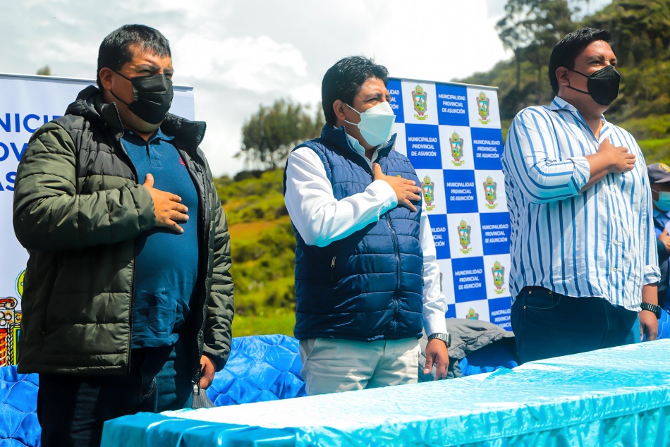 El Gobierno Regional de Áncash puso en marcha la obra de “Creación del sistema de riego tecnificado en la localidad de Tucujirca, distrito de Acochaca, en la provincia de Asunción" con un presupuesto de 2 millones 220 mil 810 soles.. Este proyecto tiene el objetivo de mejorar las condiciones agrícolas en esta parte de la región y beneficiará a 200 familias que se dedican a esta actividad. Durante la ceremonia protocolar, el Gobernador Regional de Áncash, ingeniero Henry Borja Cruzado, manifestó que los trabajos consisten en la construcción de un reservorio de capacidad de 300 m3 (2 unidades), la construcción de línea de distribución, el sistema de riego por aspersión, la instalación de cámaras rompe presión, entre otros; además de brindar capacitación y asistencia técnica.. "Con la mejora y optimización de un buen sistema de riego, se producen mejores ganancias socioeconómicas, porque se mejora la producción de los cultivos y, al mismo tiempo, contribuye generar productos de mejor calidad y con aportes nutricionales", señaló.. El Consejero Regional de Asunción, Jorge Antonio Noriega Cortez, indicó que está obra es de mucha importancia y que beneficiará a los agricultores de la zona mejorando su economía.. La población agradeció el apoyo e indicó que esta obra les permitirá mejorar notablemente sus labores agrícolas gracias al riego tecnificado.