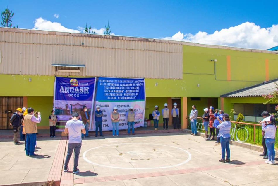 El Gobierno Regional de Áncash, inicio los trabajos de mantenimiento de la infraestructura del Instituto de Educación Básico Superior Tecnológico Público “Eleazar Guzmán Barrón” distrito de Independencia, Provincia de Huaraz con un presupuesto de inversión de S/ 1´200,000.00 en beneficio de más de 900 estudiantes de Huaraz y el callejón de Huaylas.. Esta institución cuenta con más de 41 años de antigüedad y parte de su infraestructura ya se encuentra deteriorada y representa un peligro para los estudiantes, ante esto el gobierno regional de Áncash liderado por el Ing. Henry Borja Cruzado, intervino esta institución para mejorar su infraestructura y darles seguridad a los estudiantes.. El Ing. Alberto Cier Lotin, sub gerente de obras del gobierno regional de Áncash, indicó que los trabajos se ejecutarán de acuerdo al expediente técnico, para mejorar la infraestructura y así los estudiantes tengan mejores condiciones para recibir sus clases.. El funcionario regional señaló que “se realizará el cambio de cobertura, cielo raso, pintado de interiores y exteriores, instalación de pisos de cerámica y mejores condiciones para los estudiantes y docentes”.. Por su parte el Lic. Carlos Gerónimo Carrasco Giraldo, director del Instituto de Educación Básico Superior Tecnológico Público “Eleazar Guzmán Barrón” agradeció al gobernador regional por la celeridad de los trabajos lo que demuestra la buena gestión que viene realizando frente a la región.