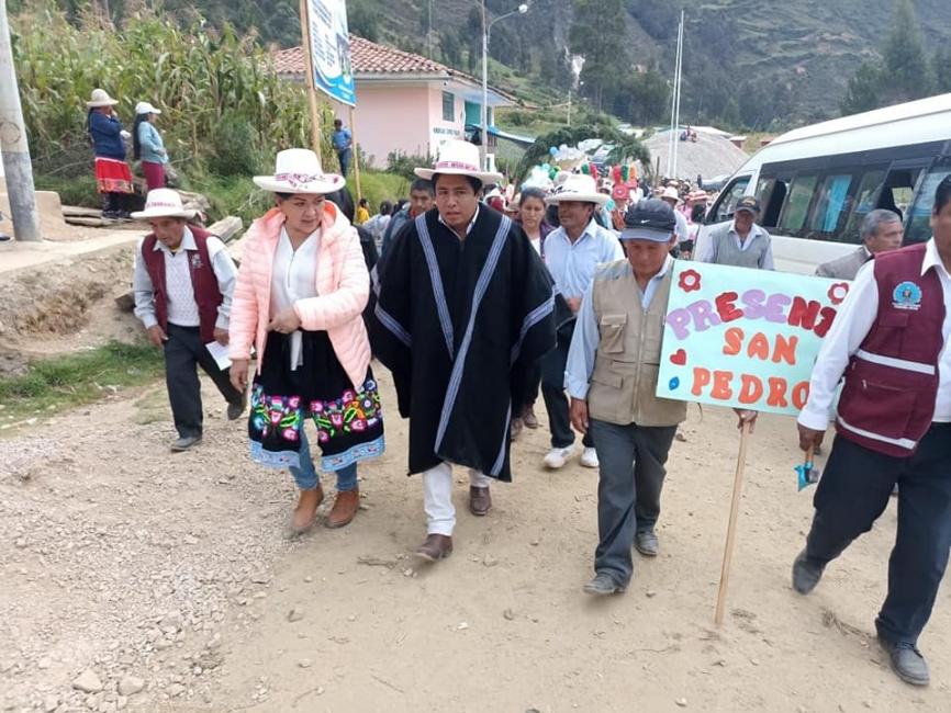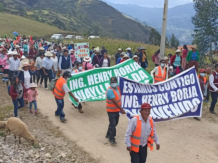 El Gobierno Regional de Áncash , puso en marcha las obra de “Mejoramiento y ampliación del sistema de riego tecnificado por aspersión en las localidades de: Huanchacbamba, con una inversión de S/. 1, 973,032.54 y San Pedro con S/. 1’173,605.87 en el distrito de Huayllan, provincia de Pomabamba.. Este proyecto tiene el objetivo de mejorar las condiciones agrícolas en esta parte de la región y beneficiará a agricultores de Huanchacbamba y San Pedro, donde se va potenciar el sector agrícola mejorando la producción y generando oportunidades de desarrollo a las familias que se dedican a la agricultura.. En la ceremonia protocolar, el gobernador regional de Áncash, ing. Henry Borja Cruzado, señaló que esta importante obra ayudará a la reactivación económica con la creación de puestos de trabajo. "Estamos llegando a los pueblos y distritos que no fueron beneficiados con obras es por eso que estamos aquí colocando la primera piedra de estas obras de riego que mejoraran la economía de las familias”.. Por su parte, el concejero de Pomabamba Lira Villanueva, felicito al Ing. Henry Borja Cruzado, por el inicio de estas obras tan anheladas por la población, indicando que el Ing. Henry Borja es el, primer gobernador regional que llega a la provincia de pomabamba con obras de desarrollo.. El Alcalde distrital de Huayllan, Sr. Carlos Cobilich Castañeda, indicó que está obra es de mucha importancia y que beneficiará a los agricultores de la zona. La población indicó que esta obra les permitirá mejorar notablemente sus labores agrícolas gracias al riego tecnificado.. Finalmente la primera autoridad regional indico que realizaran la electrificación en los 20 sectores de pomabamba que aún no cuanta con energía eléctrica, la llega de cuatro ambulancias para Pomabamba.