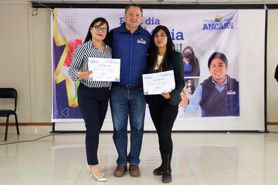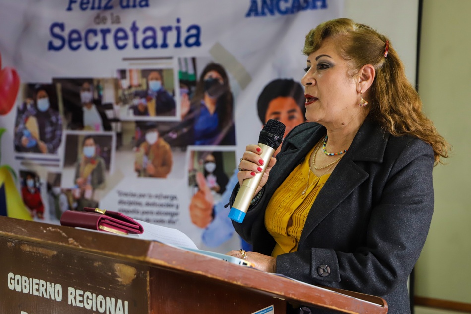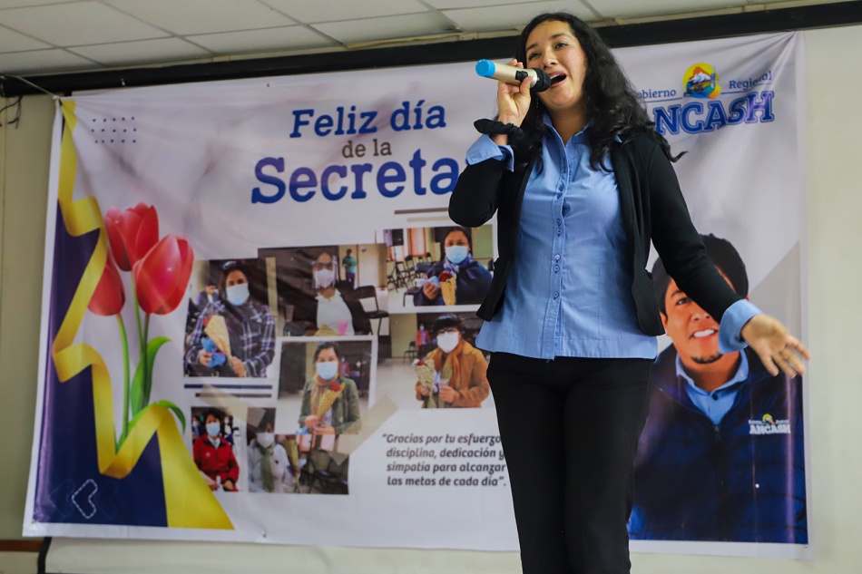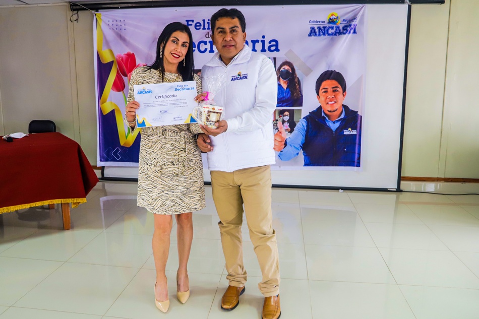 Hoy, 26 de abril del 2022, en el marco de la celebración por el Día de la Secretaria, el Gobierno Regional de Áncash rindió un merecido homenaje a todas las secretarias que laboran en la institución.. El gerente general, Dr. Víctor Síchez, en representación del Gobernador Regional, Ing. Henry Borja Cruzado, resaltó la gran labor que realizan las secretarias para el cumplimiento de los objetivos de la gestión. “Quiero felicitaras por su gran labor, por su dedicación y por ser parte importante de esta gestión”, agregó. La actividad contó con la presencia del gerente general, Dr. Víctor Síchez; la subgerente de recursos humanos, Dra. Rocío Vargas, del gerente general de administración, Lic. Manuel García.. Durante el homenaje, las secretarias recibieron diplomas de reconocimiento y obsequios por parte de los funcionarios regionales.