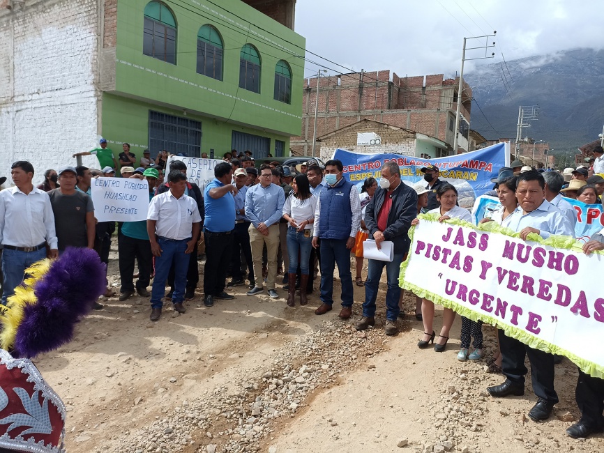 Con el objetivo de desarrollar la agricultura, y turismo el gobierno regional de Áncash, entrego el terreno para elaboración del expediente técnico del proyecto “Mejoramiento del servicio de transitabilidad vehicular del camino vecinal, Mancos, Musho, Tumpa, Utupampa, Huashcao y Huaypan en la provincia de Yungay”, proyecto que ayudará a mejorar el corredor turístico de la zona con un mejor acceso y transitabilidad para la población.. Este importante proyecto beneficiará a tres distritos que son Mancos, Ranrahirca y Yungay además de siete centros poblados de la zona que cuentan con una población de más de 25 mil personas que mejorarán su economía y su calidad de vida.. En representación del Gobernador Regional Ing. Henry Borja, asistió el gerente general Dr. Víctor Sichez Muñoz, quien expresó el compromiso de la gestión para mejorar las condiciones de vida en esta importante localidad, “esto obra permitirá una mejor comunicación y transporte de los productos agrícolas que cada uno de ustedes produce en sus hogares mejorando su economía”.. El alcalde distrital de Musho, Víctor Cuta, agradeció al gobernador regional indicando que este proyecto es de vital importancia para su zona debido a que permitirá mejoras las condiciones de vida de los pobladores mejorando la economía.