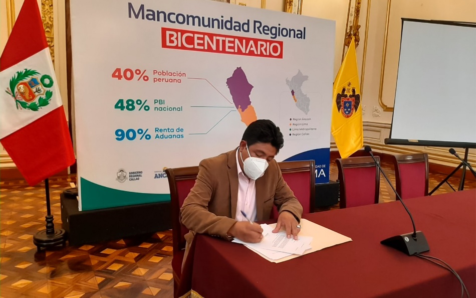 Con el objetivo de beneficiar a más de 12 millones de personas, hoy en la ciudad de Lima se llevó a cabo la firma del acta de creación de la “Mancomunidad Bicentenario”, integrada por los gobiernos regionales de Callao, Áncash, Lima Provincias y la Municipalidad Metropolitana de Lima.. El gobernador regional de Ancash, ing. Henry Augusto Borja Cruzado, señaló que la Mancomunidad Bicentenario, principalmente, trabajará proyectos territoriales en los aspectos vial, turístico y ambiental, con la finalidad de buscar el desarrollo económico de sus poblaciones.. Durante los discursos emitidos, los máximos representantes coincidieron en señalar que este día quedaría en la historia del Perú como un signo de hermandad.. Cabe mencionar que el pasado nueve de noviembre, en la sede de la Presidencia del Consejo de Ministros, se firmó un acta de intención, que formalizó la voluntad política del alcalde metropolitano, del gobernador regional del Callao, del gobernador regional de Lima y del gobernador regional de Áncash, de iniciar el proceso para formar una mancomunidad regional entre estos cuatro territorios que representan a más de 12 millones de personas, es decir, más de un tercio del país.