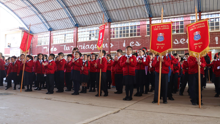 Son alrededor de 1350 estudiantes del nivel primario de la Gran Unidad Escolar Mariscal Toribio de Luzuriaga, de la ciudad de Huaraz, quienes participaron esta mañana en el inicio del buen año escolar 2024 con una gran presencia de la comunidad estudiantil y los padres de familia de la institución.
