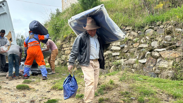 Como se puede apreciar en las fotografías se entregó frazadas, colchones, víveres entre otros de necesidad vital para las personas.