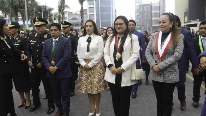 La vicegobernadora regional de Áncash, Angelly Epifanía Chávez, en representación del gobernador Koki Noriega Britto, participó esta mañana de las actividades protocolares con motivo del 30.° Aniversario del Distrito de Nuevo Chimbote, en la provincia del Santa.