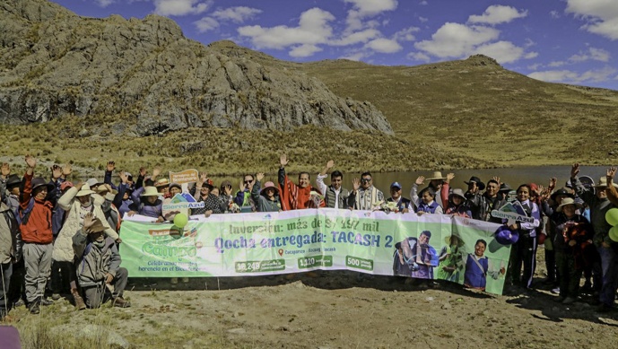 En el marco del Día del Campesino ‘Héroes del Campo’, en medio de danzas típicas y cantos andinos; más de 300 agricultores del distrito de Cotaparaco (Recuay - Áncash) participaron de la inauguración de la qocha Tacash 2, obra financiada por la Unidad Ejecutora Fondo Sierra Azul (UEFSA) del Ministerio de Desarrollo Agrario y Riego (MIDAGRI), con una inversión de S/ 197,567.01.