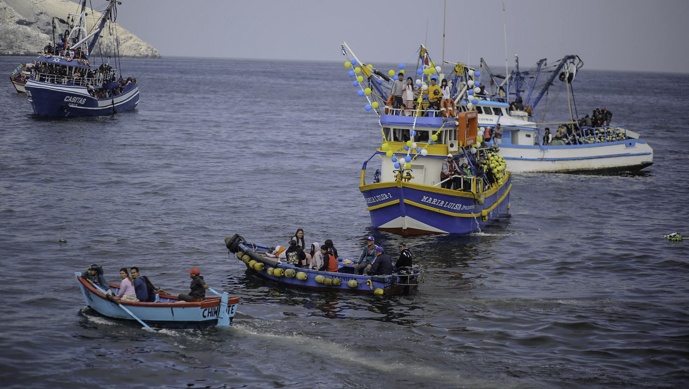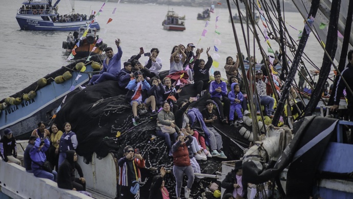 El tradicional recorrido marítimo de la imagen de San Pedrito comenzó a bordo de la chalana "Kathy", partiendo desde la playa La Caleta. Posteriormente, la imagen fue transferida a la lancha artesanal "Hilary 1". Finalmente, fue transportada en la embarcación Andes 53, de la empresa pesquera Copeinca, que este año tuvo el honor de ser la anfitriona del evento.