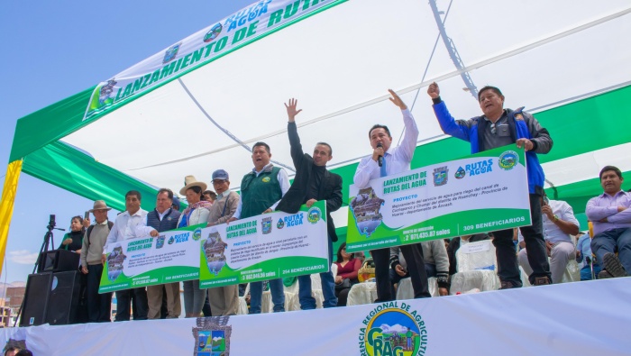 Con la participación de los beneficiarios directos, esta mañana el gobernador regional de Áncash realizó el lanzamiento del Programa Regional Rutas del Agua, destinando 150 millones de soles en proyectos de construcción de infraestructura de riego para la agricultura de esta parte del país.