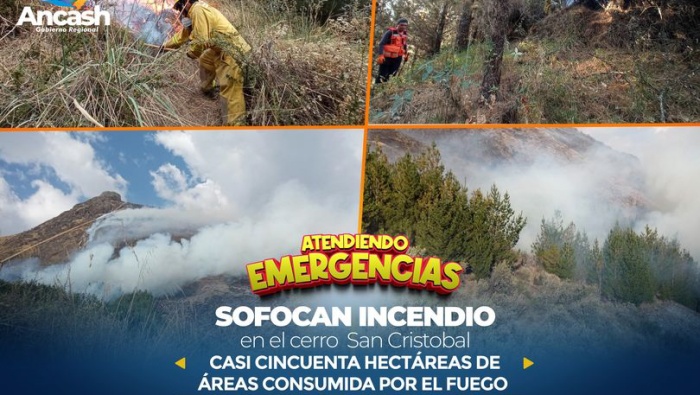 Un incendio forestal de grandes proporciones fue controlado por el Grupo de Intervención Rápida para Emergencias y Desastres (GIRED) del Gobierno Regional de Áncash, en las faldas del cerro San Cristóbal. El siniestro, visible desde la ciudad por la densa columna de humo, alarmó a la población durante la tarde del día de ayer.