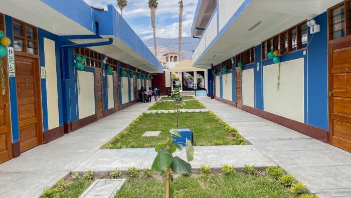 - Tres bloques que albergan oficinas, aulas con servicios higiénicos, biblioteca, aula psicomotriz, entre otros.