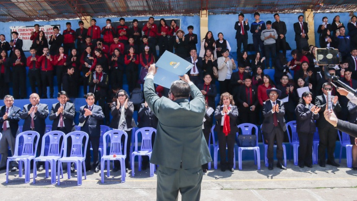 La ceremonia en mención tuvo un marco espectacular con la presencia de los alumnos, docentes, ex alumnos y público en general, además de la presencia de las principales autoridades regionales como gerente general del GORE Ancash, Marco La Rosa Sánchez, los consejeros regionales de Huaraz, Wálter Medrano Acuña y de Mariscal Luzuriaga, Wálter Tarazona Crispín; de la directora regional de Educación, Nancy Dolores Anaya e invitados especiales.