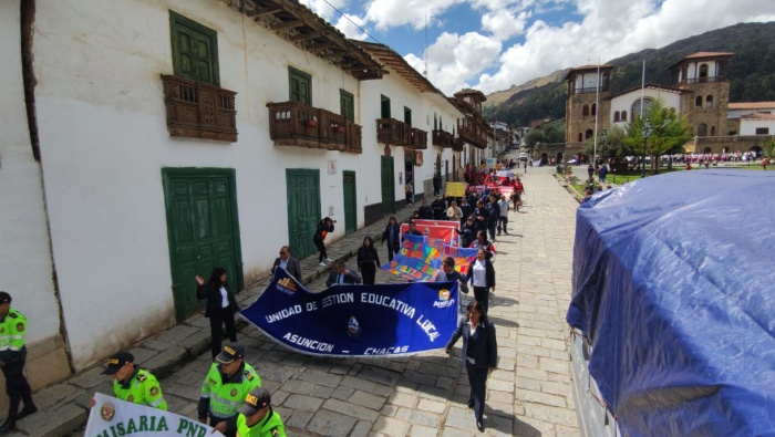 Un participativo Pasacalle de Sensibilización con miras al Simulacro Multipeligro se desarrolló en Chacas en la provincia de Asunción, con la presencia de delegaciones de diferentes instituciones públicas y privadas; similar actividad se desarrollará también mañana martes 5 de noviembre en San Luis en la provincia de Carlos Fermín Fitzcarrald.