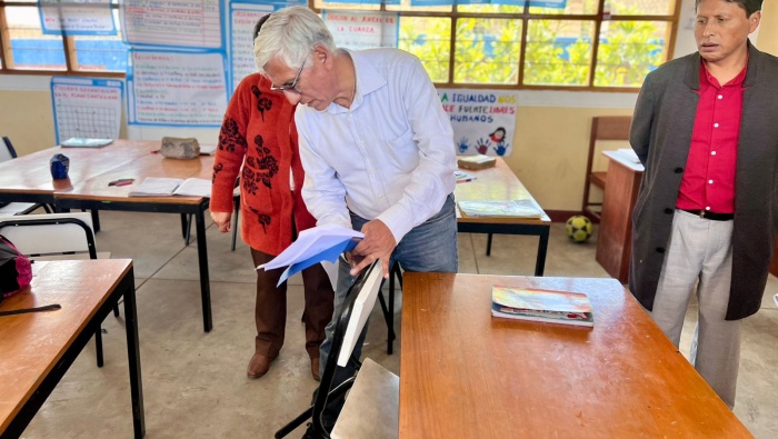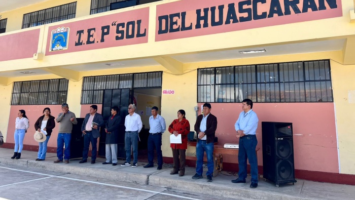 Las autoridades se reunieron con el alcalde del distrito de Ranrahirca el Prof. Rubén Zevallos Atanacio, el representante de la empresa contratista, la directora de la institución educativa Prof. Celia Mallqui Moreno, docentes, alumnos y padres de familia.