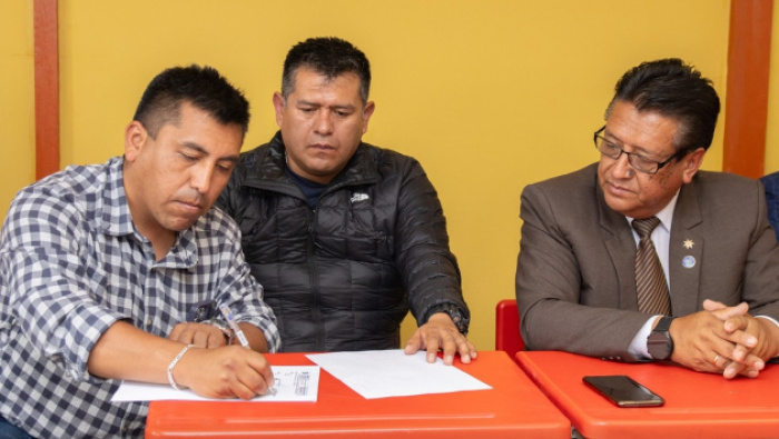 Durante el acto simbólico, el gerente general, Marco La Rosa Sánchez acompañado del gerente de infraestructura, Ing. César Moreno, firmaron el acta de entrega del local de contingencia junto con representantes del consorcio constructor y la directora del colegio, Lic. Flora Lavado García. También estuvieron presentes consejeros provinciales y diversas autoridades locales.
