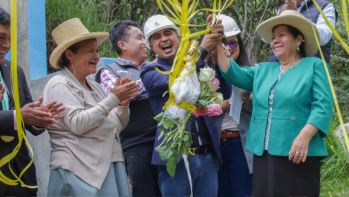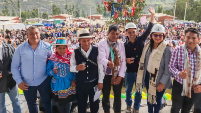 El gobernador regional de Áncash, Koki Noriega Brito acompañado de la vicegobernadora Angelly Epifanía Chavez en Marcará en Carhuaz, entregaron la obra: Mejoramiento del servicio de agua del sistema de riego Shanush del caserio de Tuyu, implementado a través del programa Hatun Áncash.