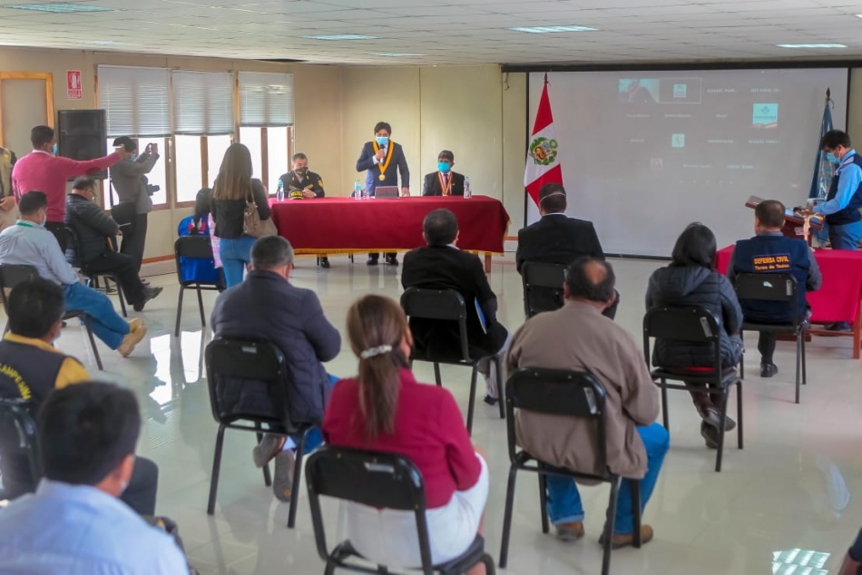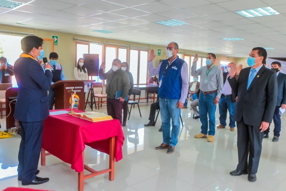 El gobernador encargado de la región Áncash Henry Borja Cruzado, juramentó como presidente del comité regional de seguridad ciudadana CORESEC y también de la plataforma regional de defensa civil para el periodo 2021, ante la presencia física y vía virtual de diversas autoridades regionales, provinciales y distritales. A su turno, la máxima autoridad regional tomó la juramentación de los demás miembros del CORESEC y de la plataforma defensa civil el cual es integrado por las autoridades de cada provincia y distrito, a quienes hizo un llamado para unir esfuerzos para fomentar una cultura de prevención de riesgos. “Estamos enfrentando una serie de emergencias por amenazas de desastres naturales debido a las intensas lluvias y que hoy estamos presenciando en cada distrito, por ello he solicitado la primera reunión para la instalación y juramentación de la plataforma de defensa civil como espacios de participación y coordinación permanente, quiero felicitar la asistencia de todas las autoridades alcaldes, policía, poder judicial, ministerio publico todos los presentes para que trabajemos juntos en esta gran tarea de la reducción de riesgos y lograr una cultura de prevención en nuestra región” expresó el gobernador encargado Henry Borja Cruzado. Así mismo en cuanto a seguridad ciudadana, el gobernador encargado Henry Borja, destacó el trabajo y el fortalecimiento del primer nivel de atención en los hospitales y centros de salud para la lucha contra la segunda ola del covid 19, además de la adquisición de 90 patrulleros para toda la región y que se estará realizando en el tercer trimestre del presente año. Al finalizar el acto protocolar, las autoridades que asistieron firmaron el acta de instalación del comité regional de seguridad ciudadana, así como de la plataforma regional de defensa civil para el periodo 2021.