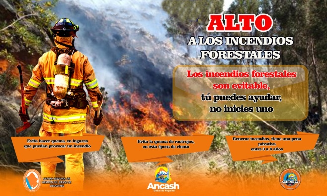 El Gobierno Regional de Ancash a través de la Oficina Regional de Gestión del Riesgo de Desastres, realiza campañas de concientización sobre las quemas indiscriminada de pastizales el mismo que vienen provocando incendios forestales de grandes proporciones.